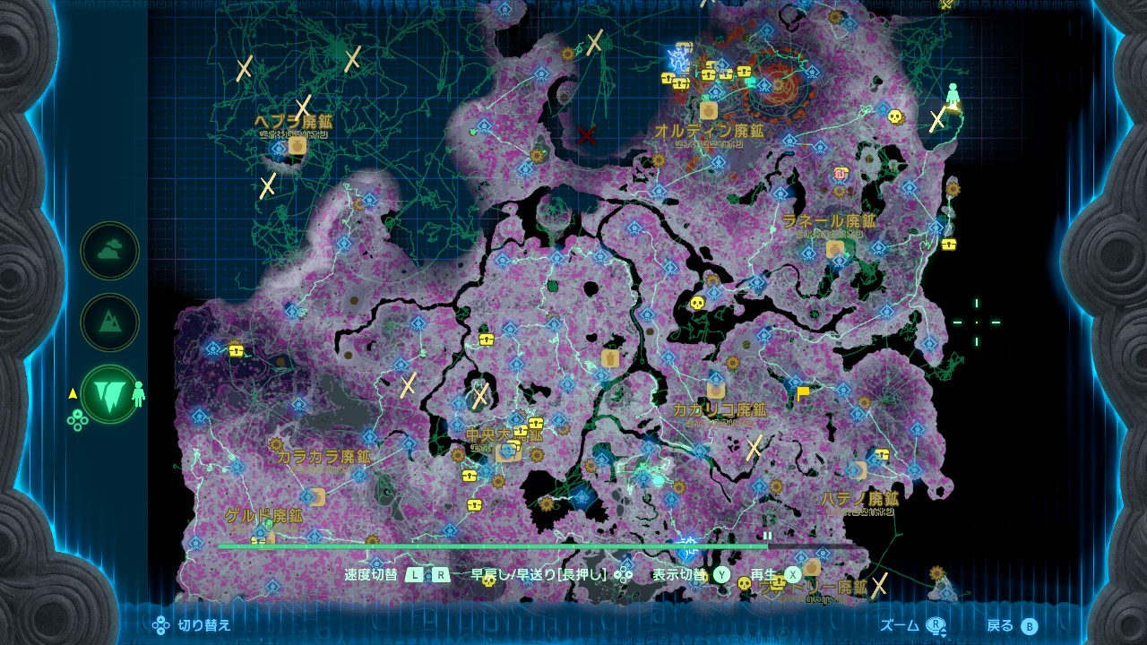 主にハイラル城の北西の部分、ヘブラのあたりの地底の根を開放して回る。