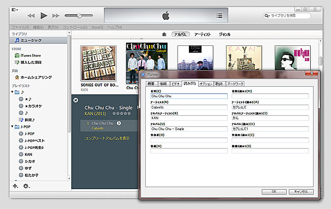 ↓この場合は、アルバムアーティスト「KAN」ですが、カブレルズの1枚目なので、読みがなは分けてますw