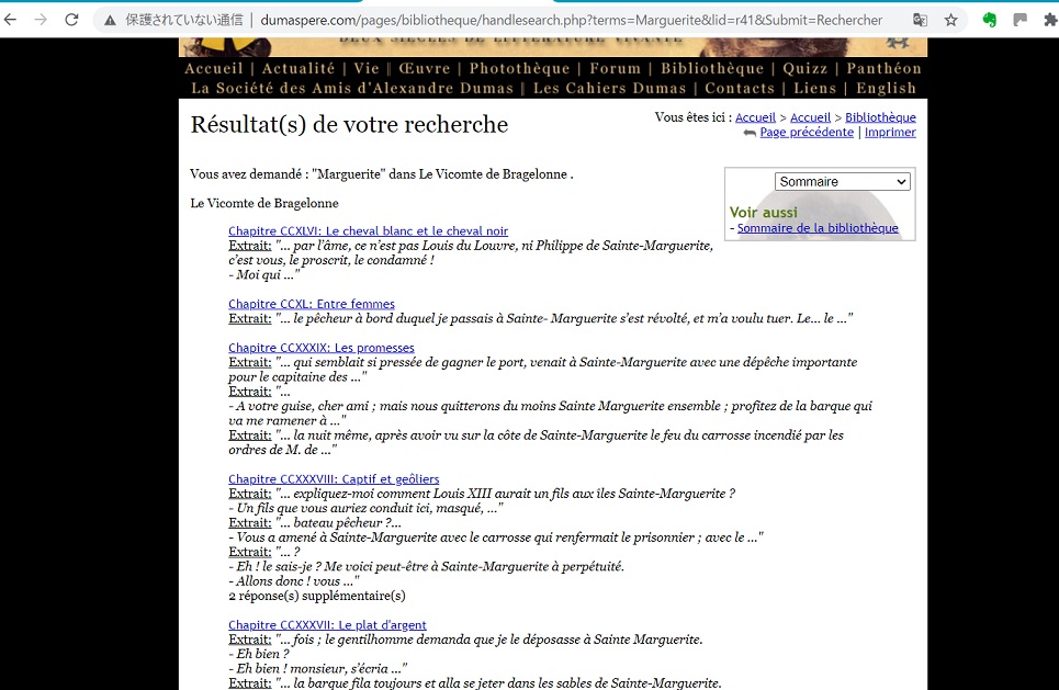 これでさっさと次に行けばいいんですが、ついでに、マルグリットという名前がどこで出てくるか調べたくなるんですよ。