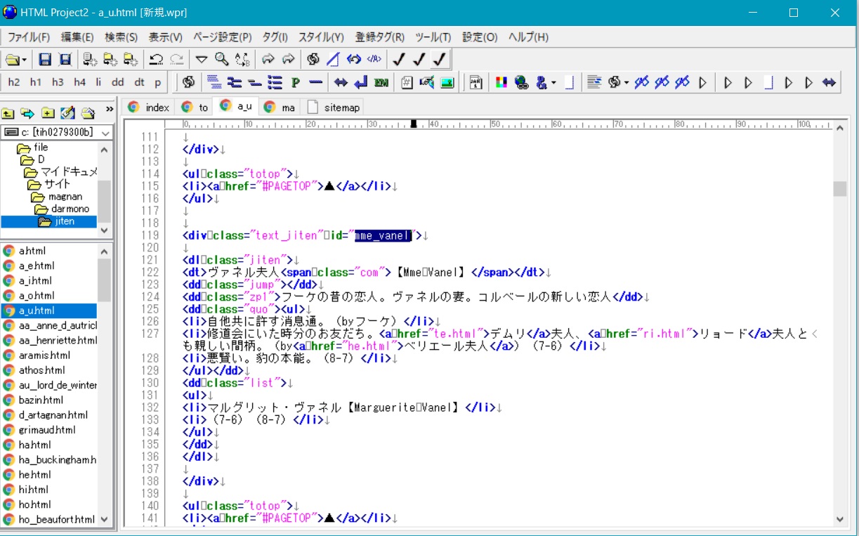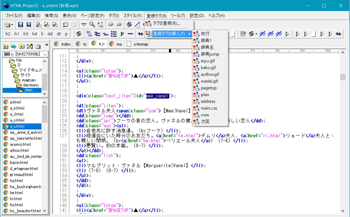 で、今使ってるhtmlエディタなんですけど、これがね、めちゃ便利なんですよ。HTMLProject2っていうんですけど。