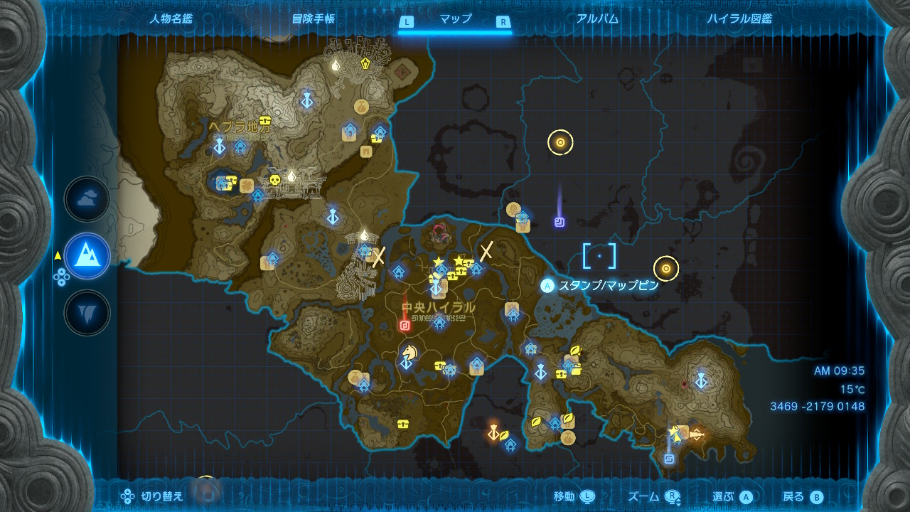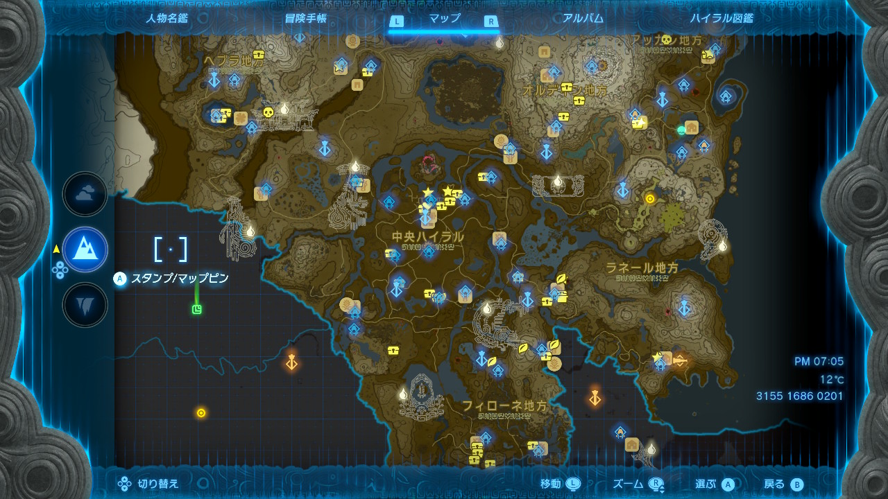 鳥望台は5箇所行き、そのうち2つ(テルリ山?とゲルドあたりの)は開放できず。