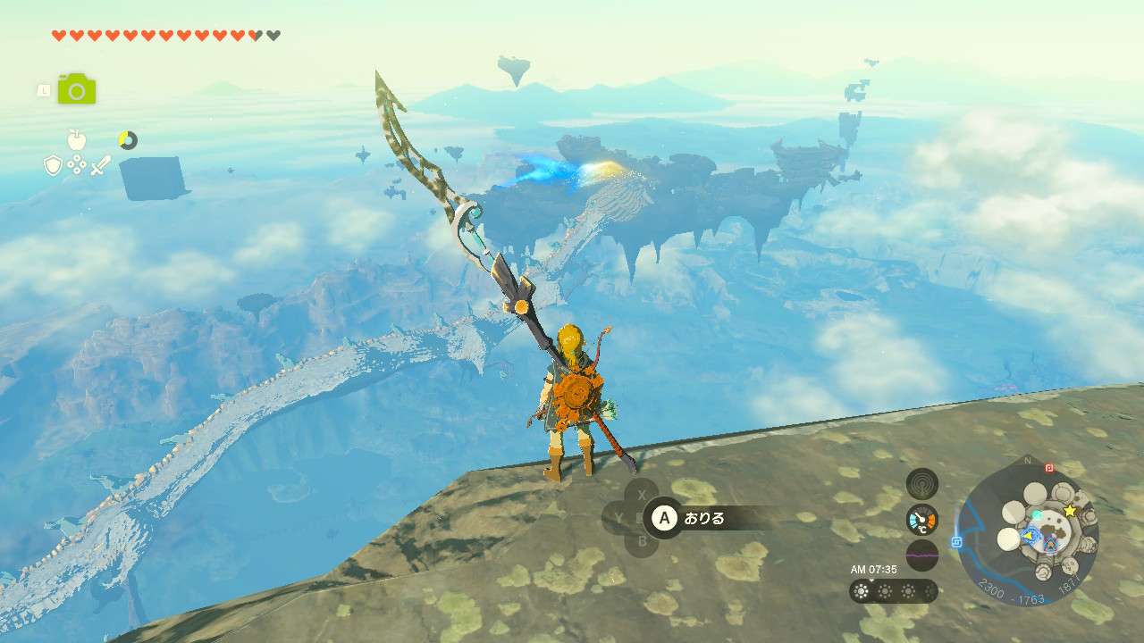 鳥望台から飛んでゲルドの街の祠をとりあえず開けたところで、次は始まりの空島をもう一度散策したくなってきた。