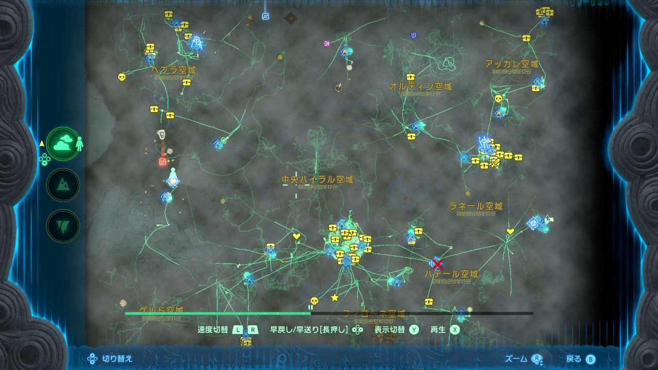 ハイラル城→カカリコ村→フィローネ地方→ハテールの空→アッカレの空→ラネールの空→ゲルドの空