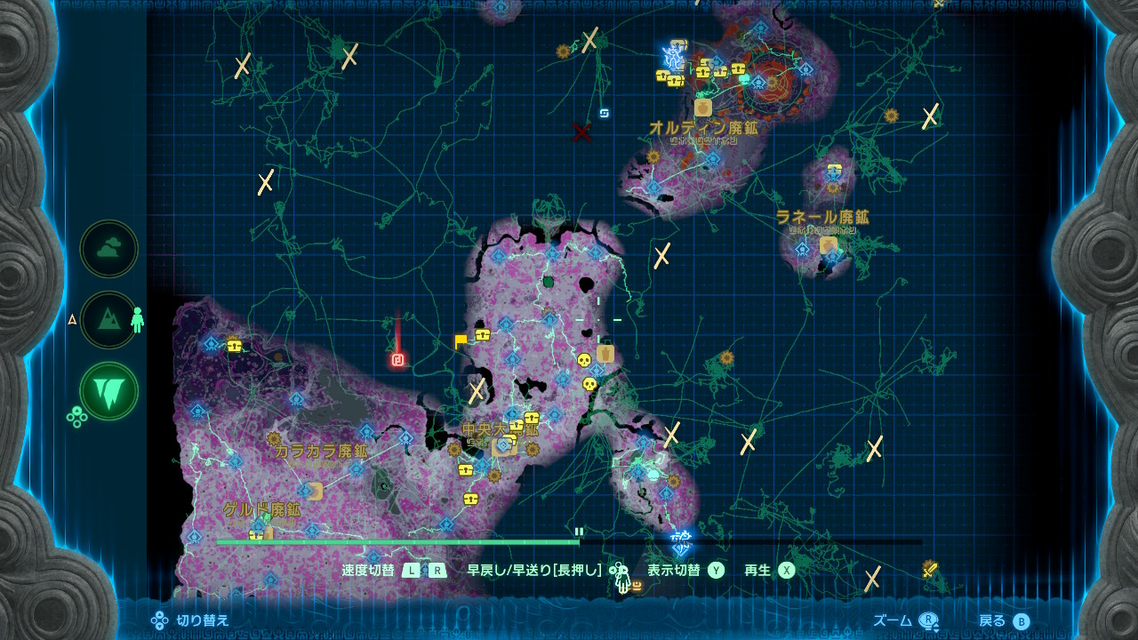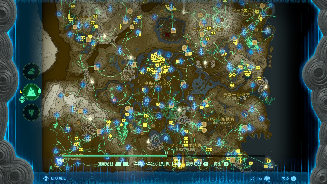 タバンタ空&東ヘブラ空&北ハイラル空→北ローメイ→雷鳴の島→ゴーレム製造房→ゲルド地底→チャレンジ消化