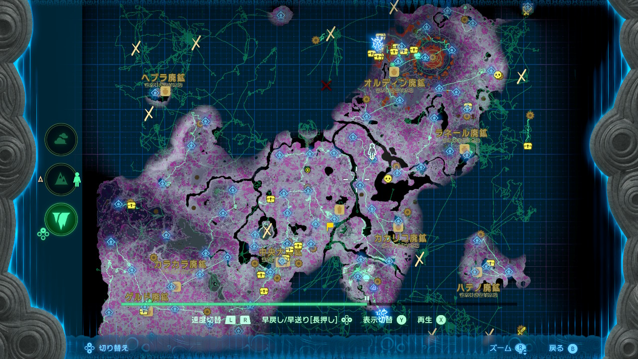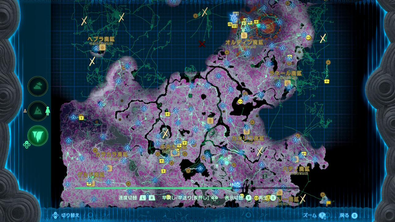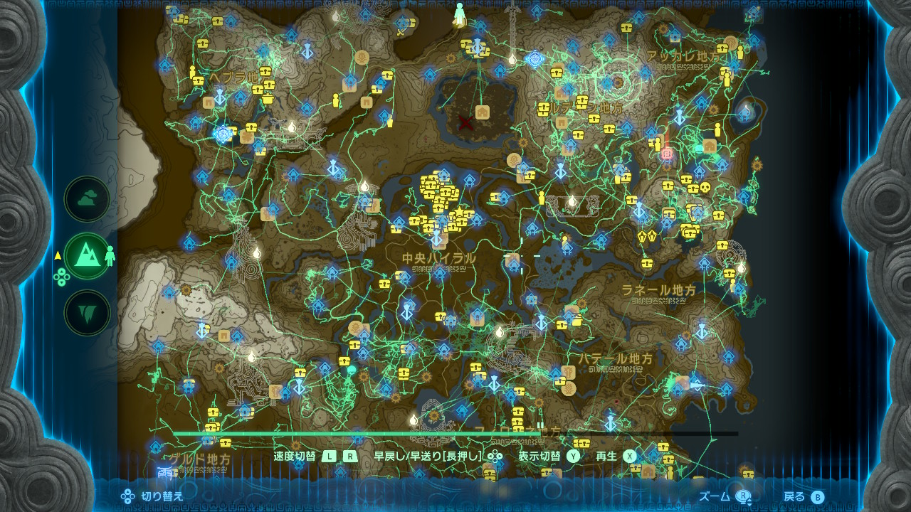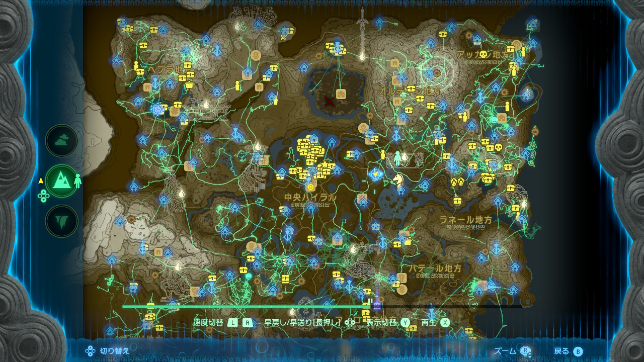 再び中央へ戻り、ウォルナー山からハイラル城方面へ。