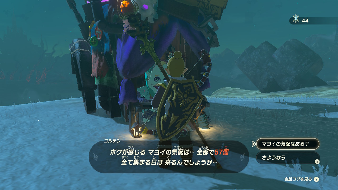 前回ストーリーを進めた後から今までに、コログを80くらい追加で見つけたんだけど、その度にコログの森はどうなってるのかなーとコログたちに言われ続けるw