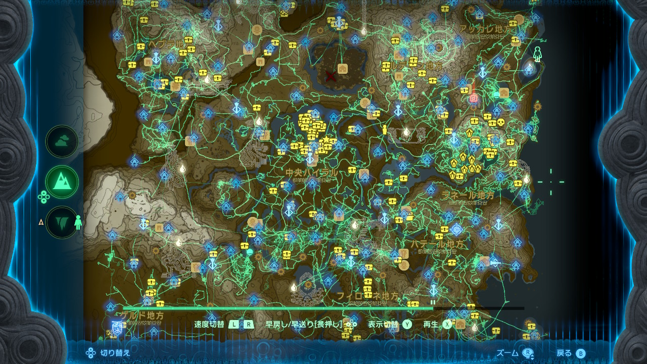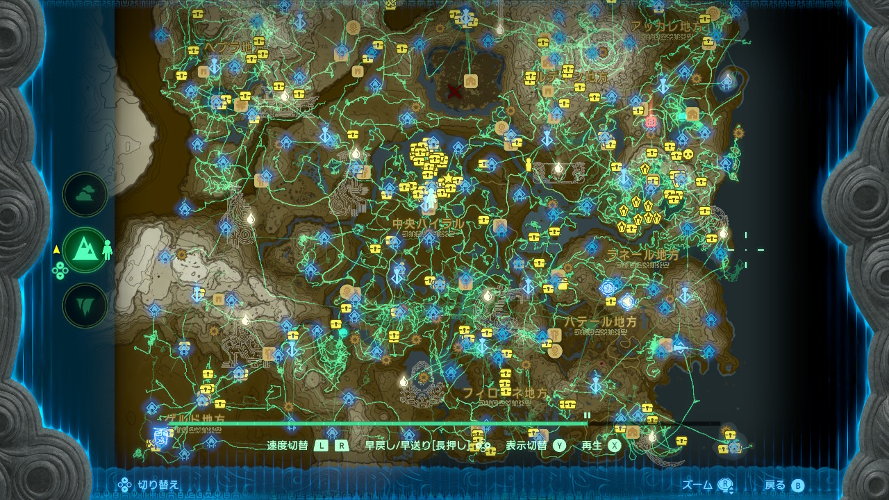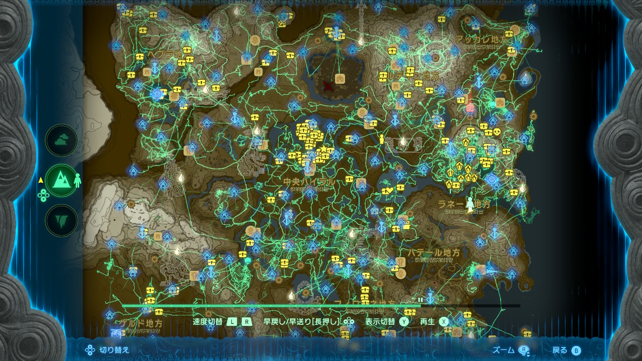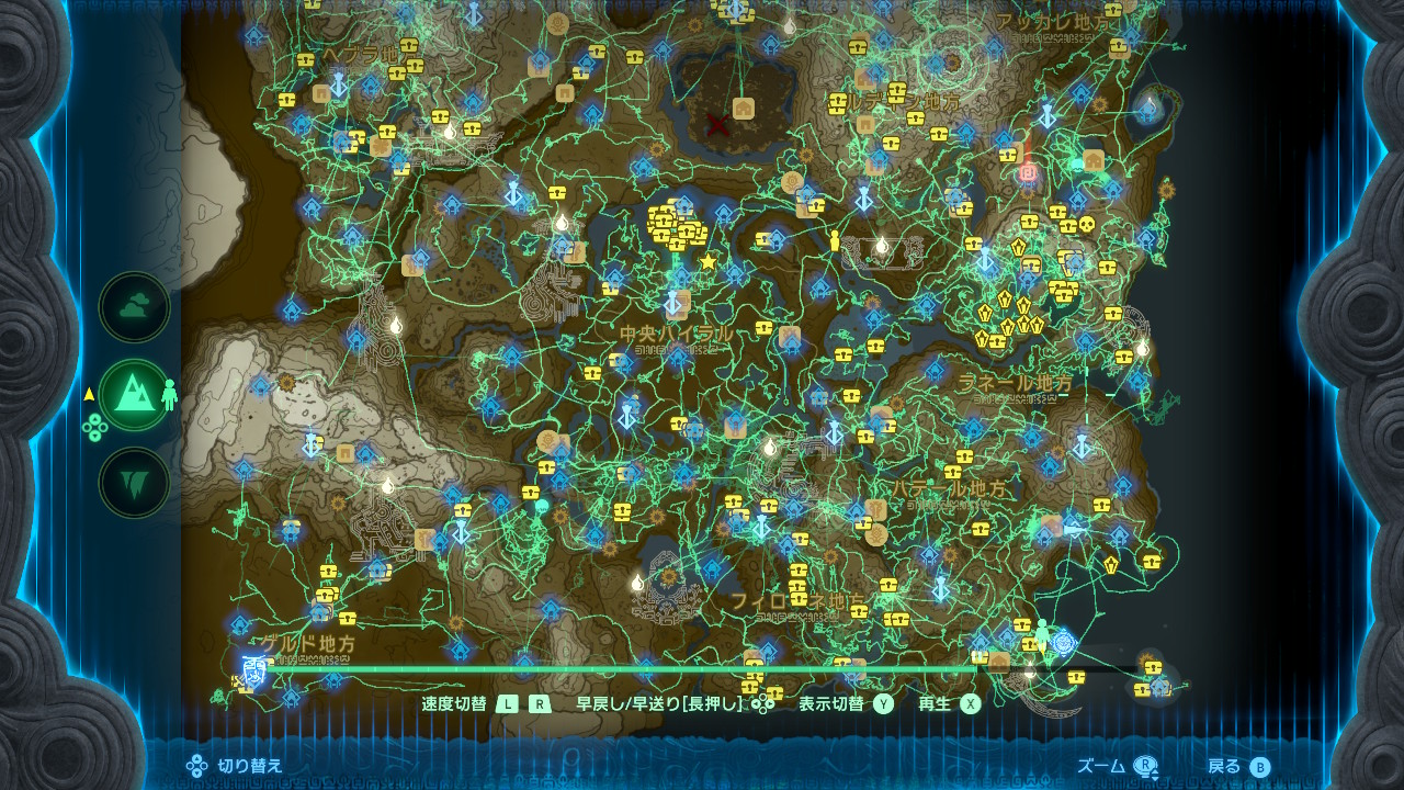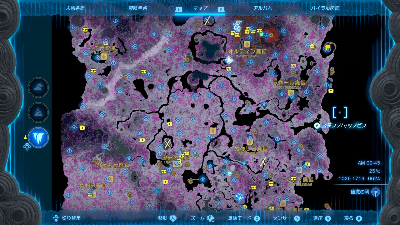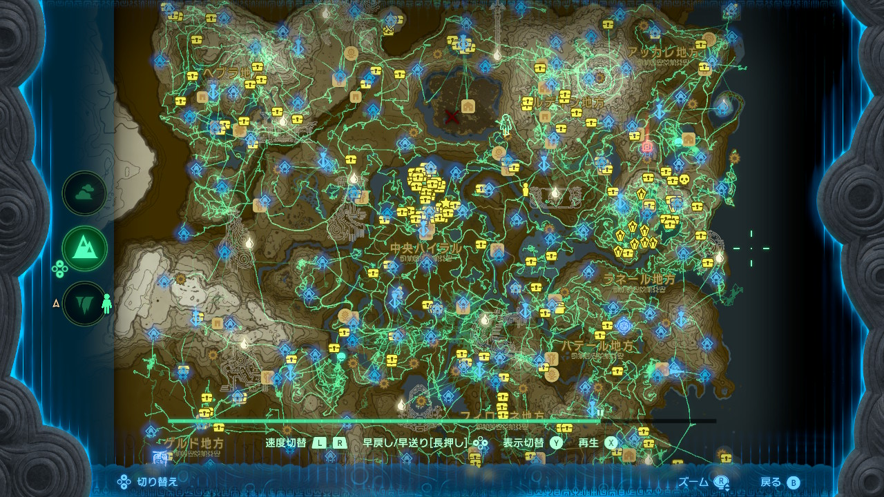主にハイラル城の北西の部分、ヘブラのあたりの地底の根を開放して回る。