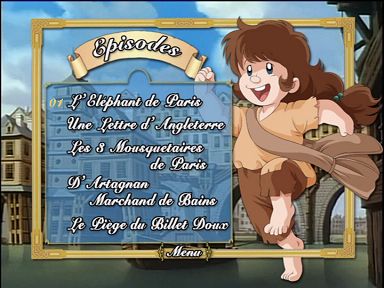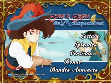 各BOXとも、DISC1、2はいきなりこのDocumentaires(三銃士紀行)の画面が登場します。