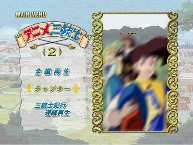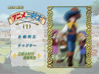 全編再生と、三銃士紀行再生は、そのまま映像の再生となるので、次のメニュー画面へとつながるのはチャプターのみです。